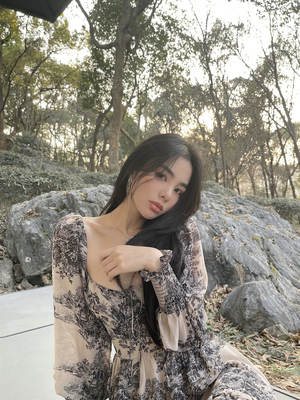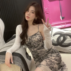 夏季水墨画高腰别致惊艳纯欲显瘦小众别致吊带连衣裙收腰